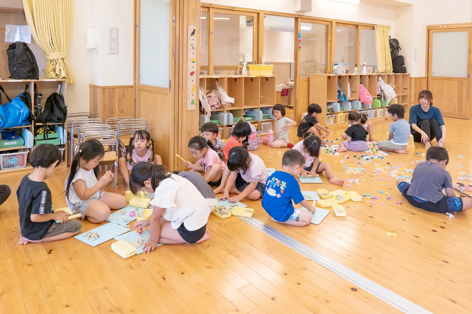 お迎えを待ちながら、室内外で好きな遊びを楽しみます。